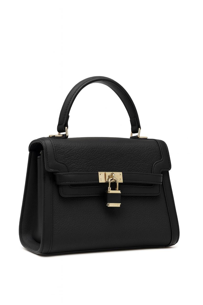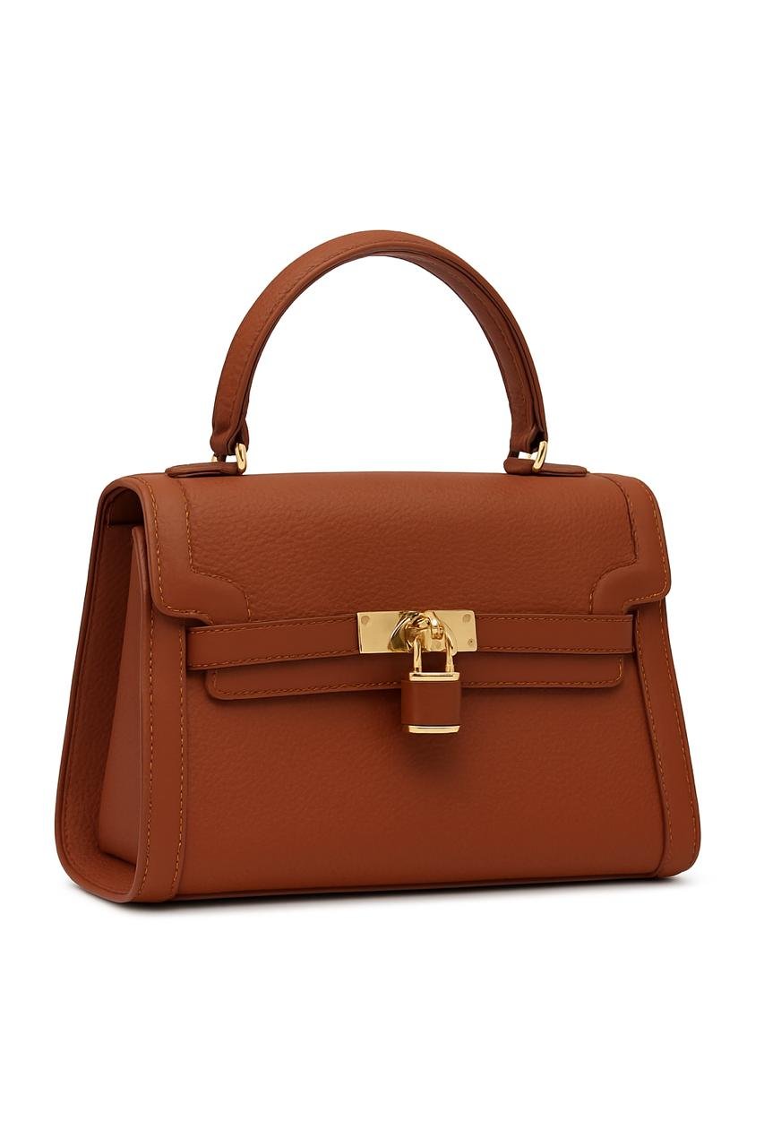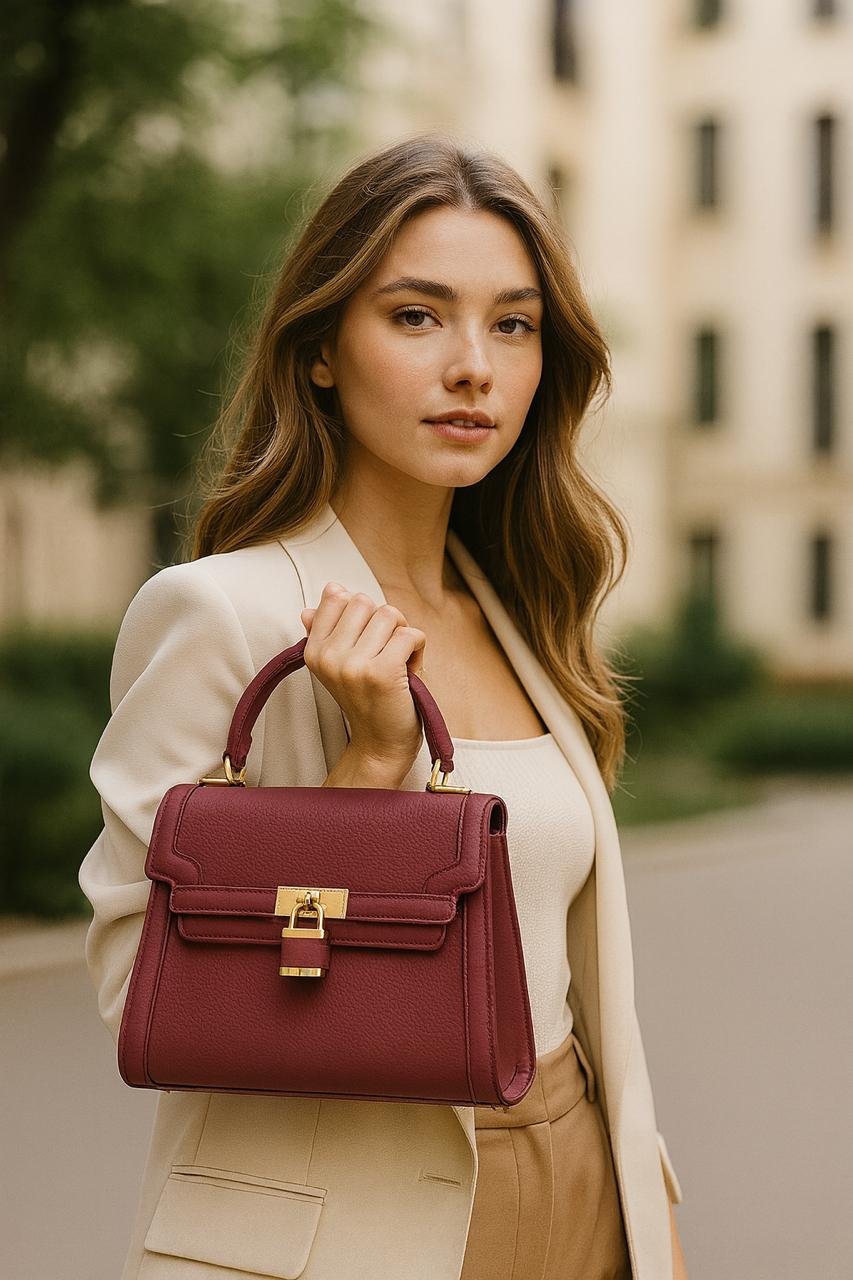 Elegant Ladies Leather Handbag with Gold Lock and Premium Detailing